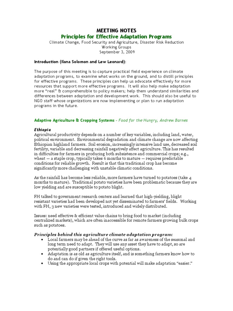 adaptation programs, to examine what works on the ground, and to distill principles