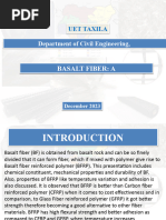 strength and high shear strength, high availability, and good cost performance. It is found in nature as an inorganic non-metal material, and is a new basic material and high-tech fiber that can satisfy the demand for the development of basic infrastructures. The technical specifications of basalt fiber are laid out in table 1 and table 2. (1) The naturalness of raw material. Since the raw material of BCF is naturally found in the form of volcanic extrusive rock, it has natural chemical and thermal stability and does not possess any known health risks. (2) Comprehensiveness of performance. Basalt fiber is a multi-performance fiber. For example, it is resistant to alkalis and acids; it is thermally, electrically and sound insulated; its tensile strength can be greater than large-tow carbon fiber, its elongation is better than smalltow carbon fiber. Basalt has a 3-dimentional molecule and when compared with single infiltrating linear polymeric fibers, it has higher anti-compressive strength, shear strength, adaptability in any harsh environment, anti-aging, as well as other excellent characteristics. (3) Cost effectivness. Basalt fiber for cement and concrete is not expensive, it is a competitive alternative product of polypropylene fiber and polyacrylonitrile fiber. (4) Natural compatibility. Basalt fiber is a typical ceramic fiber, its easy to disperse when mixed with cement concrete and mortar. Fresh basalt fiber reinforced concrete has good characteristics, such as volume stability, good workability, good stability, excellent thermal resistance, anti-seepage, crack resistance and impact resistance. Therefore, basalt fiber reinforced concrete serves the functions of reinforcement, crack resistance, and can extend the life of construction in the fields of housing, bridges, highways, railways, urban elevated roads, runways, ports, subway tunnels, the coastal protection works, plant facilities. BCF is natural material and will bring revolutionary changes in construction and transportation.