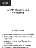 Autoregressive models specify the current value of a series yt as a function of its previous p values and the current value an error term, ut, while moving average models specify the current value of a series yt as a function of the current and previous q values of an error term, ut. AR and MA models have different characteristics in terms of the length of their memories, which has implications for the time it takes shocks to yt to die away, and for the shapes of their autocorrelation and partial autocorrelation functions. 2. ARMA models are of particular use for financial series due to their fle i!ility. "hey are fairly simple to estimate, can often produce reasona!le forecasts, and most importantly, they re#uire no knowledge of any structural varia!les that might !e re#uired for more traditional econometric analysis. $hen the data are availa!le at high fre#uencies, we can still use ARMA models while e ogenous e planatory varia!les %e.g. macroeconomic varia!les, accounting ratios& may !e uno!serva!le at any more than monthly intervals at !est. '. yt = yt(1 + ut yt = ).* yt-1 + ut yt = ).+ ut(1 + ut %1& %2& %'&