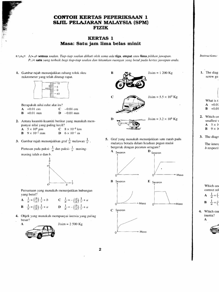 MODEL EXAIVIINATION PAPER 1 sIJrL PEIITJARAN lr[AIl\ySrA (SpM) PIIYSICS