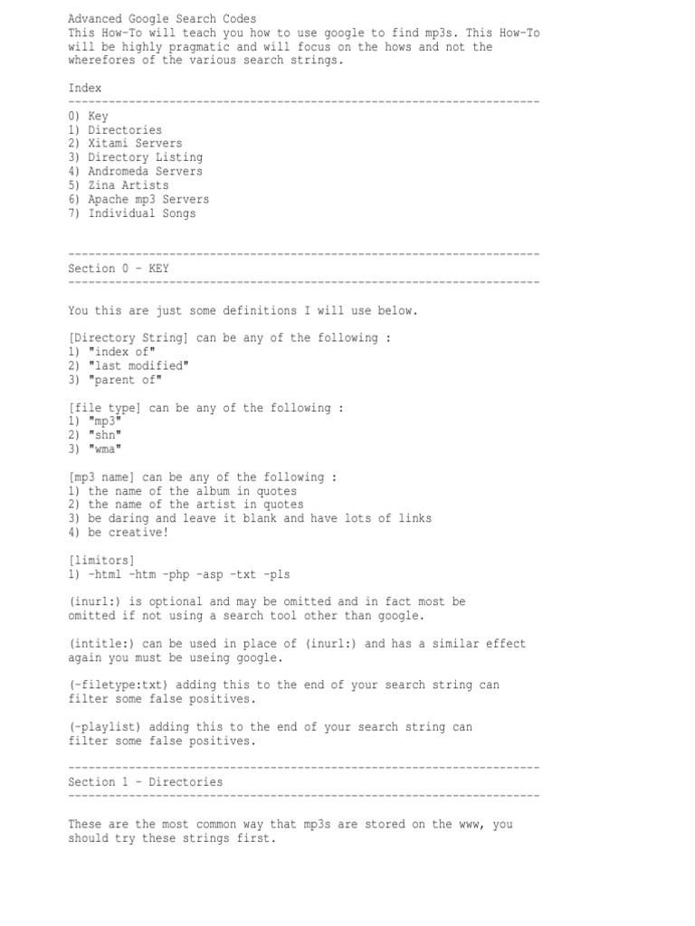 Advanced Google Search Codes This How-To will teach you how to use google to find mp3s.