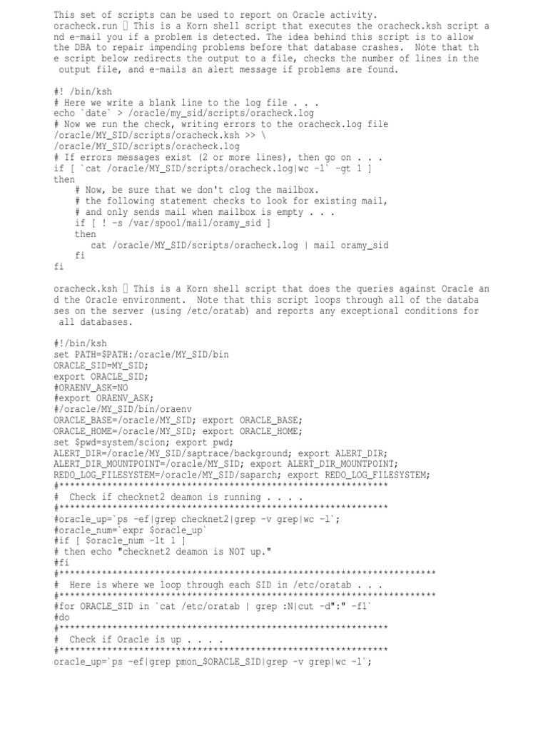 ses on the server (using /etc/oratab) and reports any exceptional conditions for