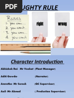 Start of second week Rita calls meeting and says she doesnt like some things and things were changing. Changes included: o o o o o 24 minute lunch, rather than 30 min 23 minute breaks, rather than 30 min 5 minute wash up time rather that 15 Tardiness and Absenteeism will not be tolerated Job rotation (on experimental basis)