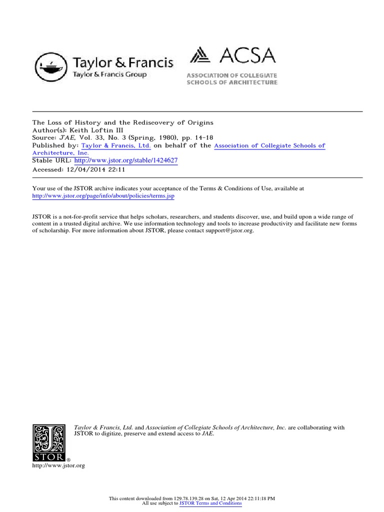 The Loss of History and the Rediscovery of Origins Author(s): Keith Loftin III Source: JAE, Vol.