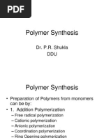 ! Polymers a brief market overview! ! Introduction to polymerization processes! ! Coordination polymerization! ! Free radical polymerization! ! Suspension polymerization! ! Emulsion polymerization! ! Step-growth polymerization! ! Control of polymerization reactors!