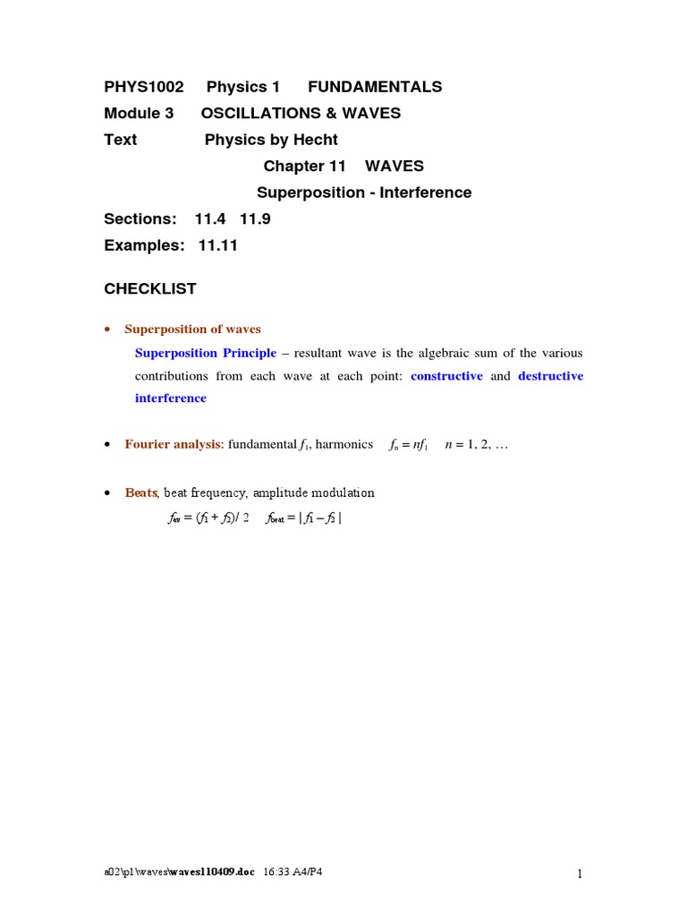 Superposition - Interference Sections: 11.4 11.9