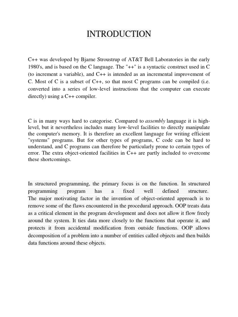 C++ (pronounced see plus plus) is a general purpose programming language that is free-form and compiled. It is regarded as an intermediate-level language, as it comprises both high-level and low-level language features.It provides imperative, object-oriented and generic programming features.