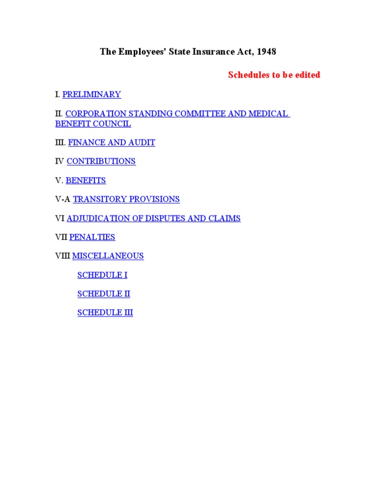 Employees' State Insurance Act Overview