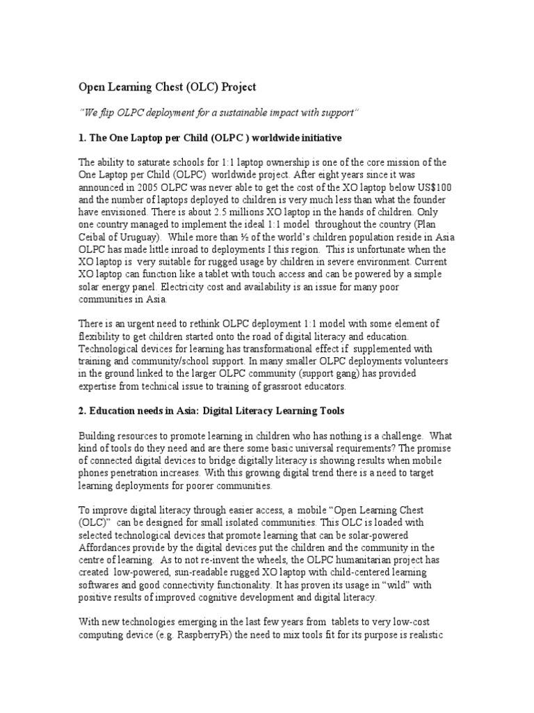 A brief write conceptual write-up up of the mobile Open Learning Chest (mOLC) that can provide a solution for easier access to technology learning tools.