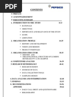 The successful completion of my project has been possible with the support, uidance and mentorin from se!eral "uarters# $ ta%e this opportunity to e&press my ratitude to all those who contributed# $ would li%e to say that it was an absolute pri!ile e for me to wor% under such a presti ious and professional or ani'ation# $ am !ery than%ful to the entire team of Pepsi Foods Pvt Ltd, C anno (oncentration plant at (hanno for their cooperation, without which the completion of this project would ha!e not been possible# $ wish to e&press my sincere ratitude to my (ompany )uide .r! Rag av Sing *+#R ,ana er- ,r! Sus i/ c ande/ *.sst# mana er- who mentored me at each step of data collection and helped me in the completion of my report# $ would also li%e to than% Prof! Nav%ot &aur for her in!aluable assistance and uidance throu hout my project# +er inputs and words of encoura ement contributed immensely to my wor% durin the project# /ast but not the least, $ e&press my than%s to 0unjabi 1ni!ersity 0atiala for ha!in pro!ided me with this uni"ue opportunity to collect data for my project in the e&citin corporate world#
