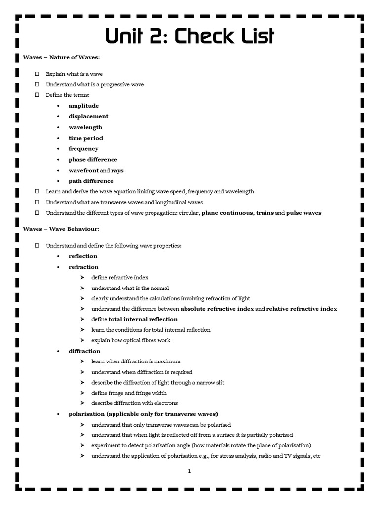 Unit 2: Check List