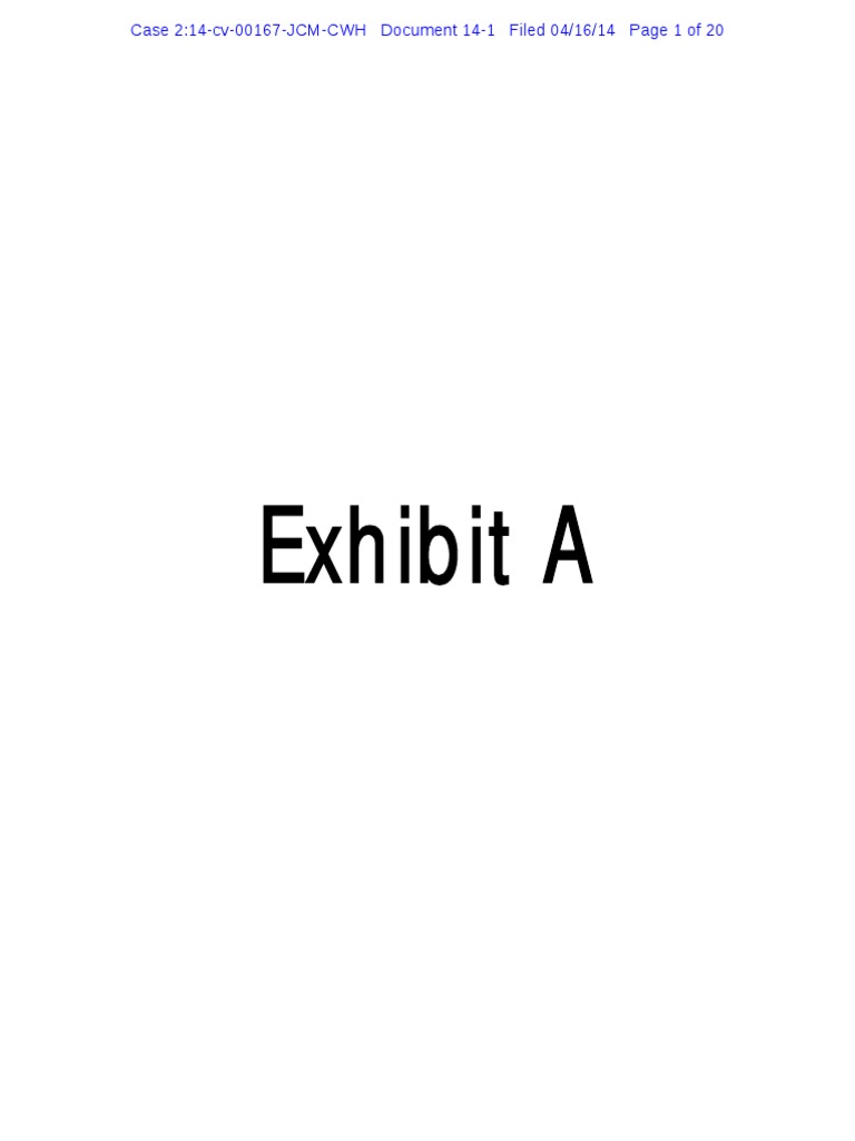 Case 2:14-cv-00167-JCM-CWH Document 14-1 Filed 04/16/14 Page 1 of 20