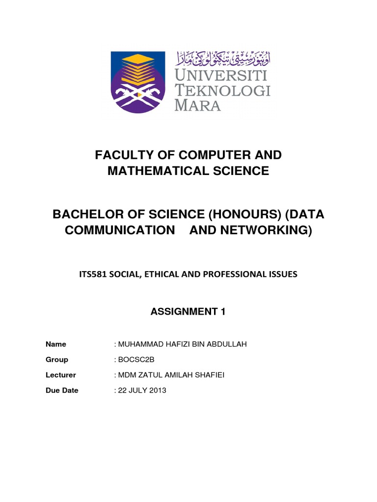 ITS581 SOCIAL, ETHICAL AND PROFESSIONAL ISSUES