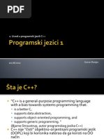 C ostaje podskup C++-a Prevladano je nekoliko nedostataka C-a Ukljueno je objektno orijentirano programiranje Uvoenjem objektno orijentiranog pristupa pojednostavljeno je pisanje koda za sloene programe Razvijan je za programiranje sloenih aplikacija u praksi Nakon prve verzije C++-a, jezik prolazi kroz tri vee revizije Utjecao je na razvoj jezika Java i C#
