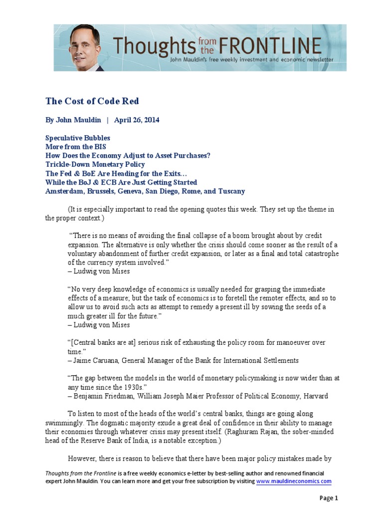 Thoughts From the Frontline is a free weekly economic e-letter by best-selling author and renowned financial expert,