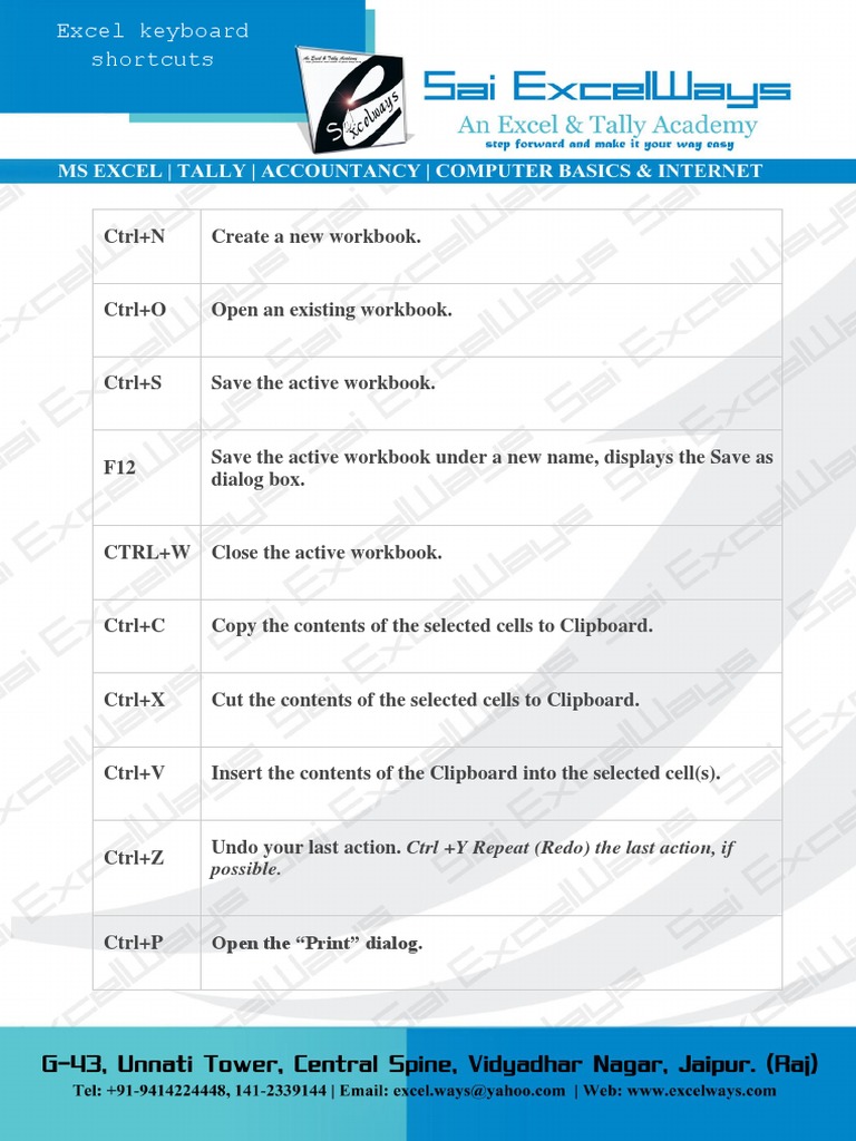Excel keyboard shortcuts