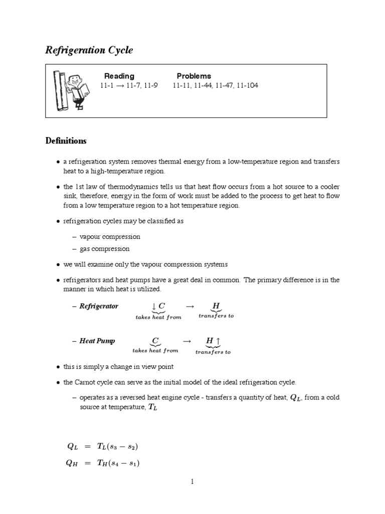 – operates as a reversed heat engine cycle - transfers a quantity of heat, QL , from a cold