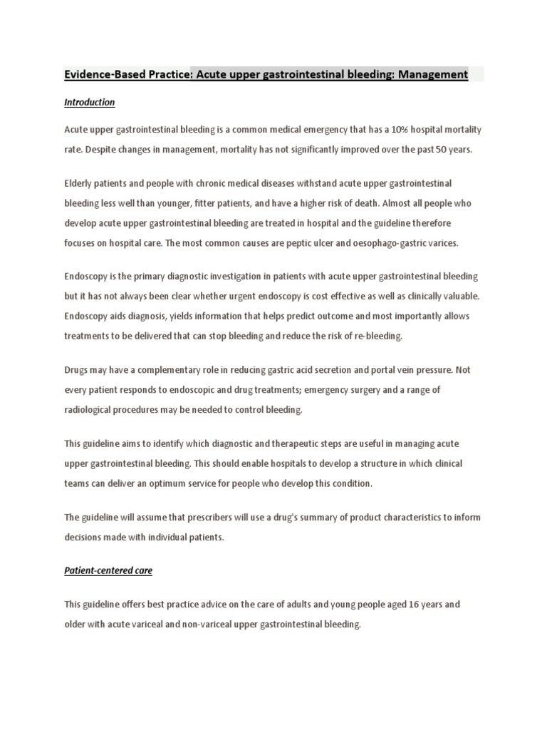 Evidence-Based Practice: Acute upper gastrointestinal bleeding: Management