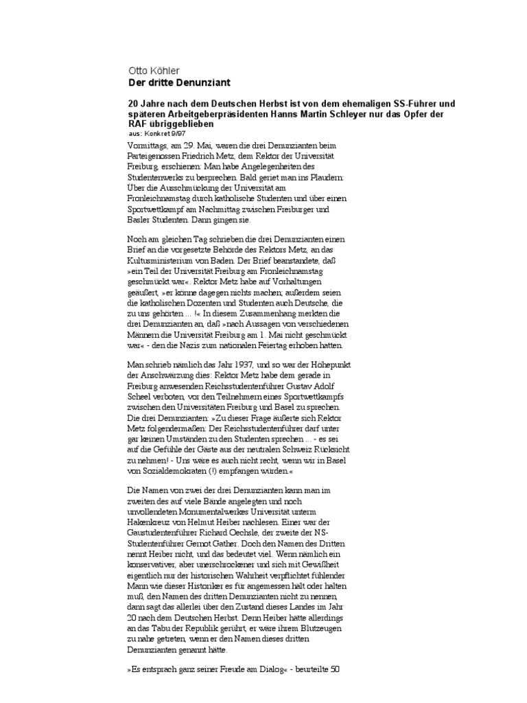 Der dritte Denunziant - Über Hans Martin Schleyers Nazivergangenheit