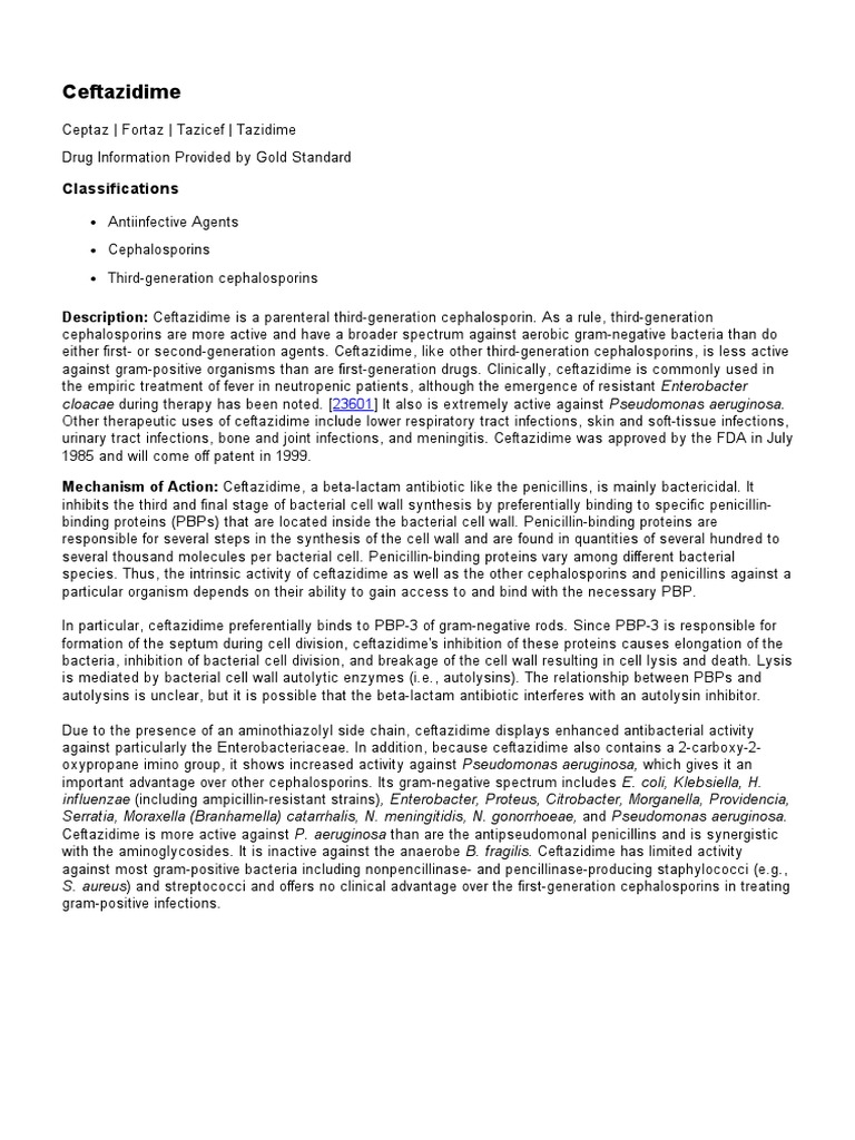 Description: Ceftazidime is a parenteral third-generation cephalosporin. As a rule, third-generation