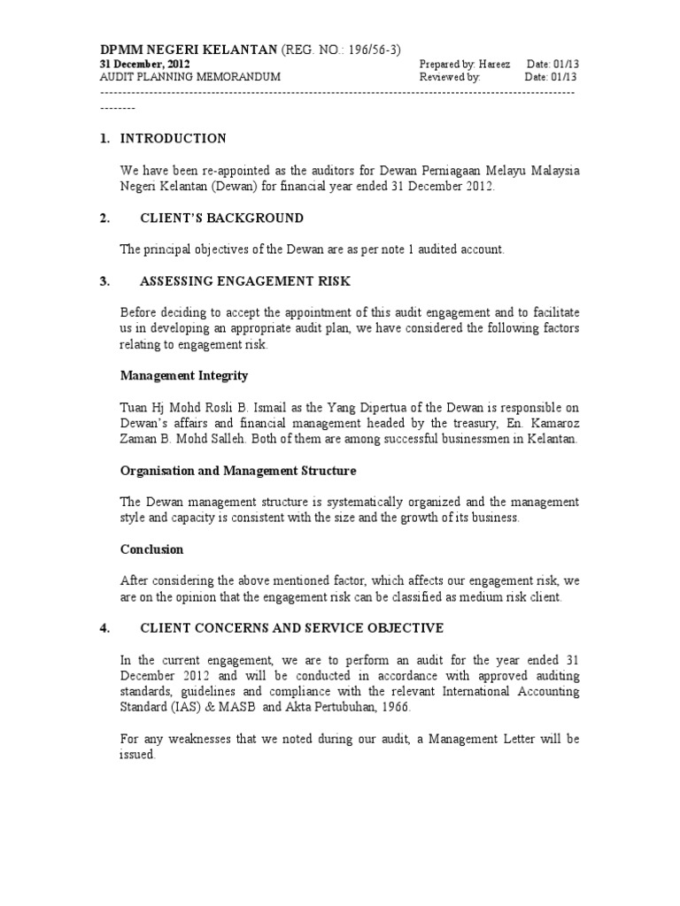 AUDIT PLANNING MEMORANDUM
