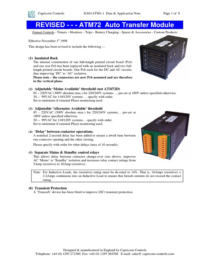 Capricorn Controls DA01ATM1-1 Data & Application Note Page 1 of 8