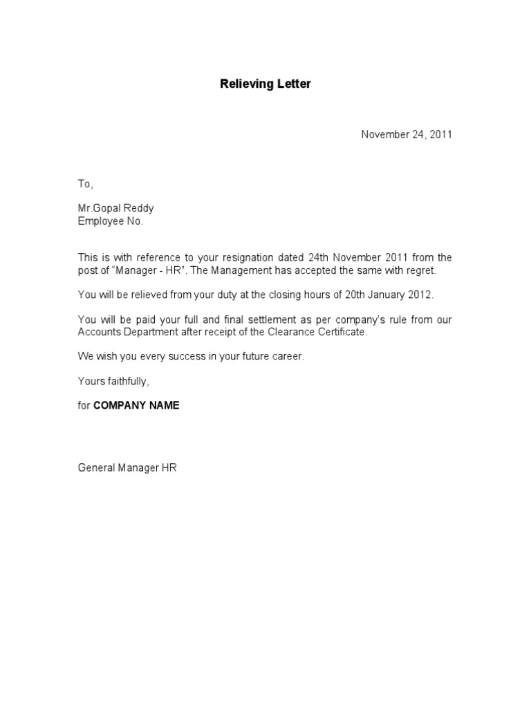 This is with referene to yo!r resi"nation dated 24th November 2011 from the