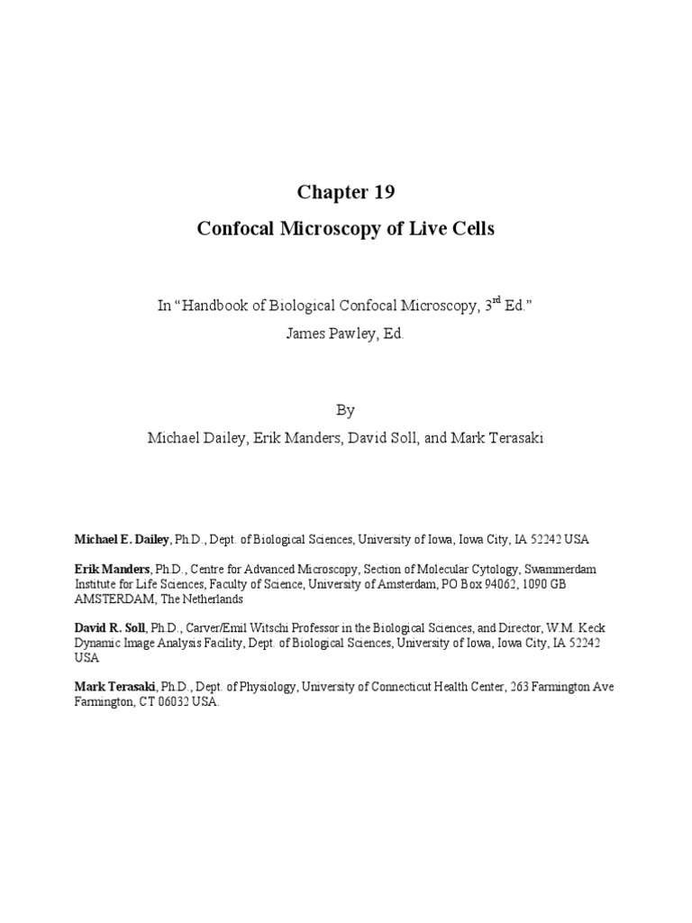 Dailey et al., Chapter 19: Confocal Microscopy of Live Cells,