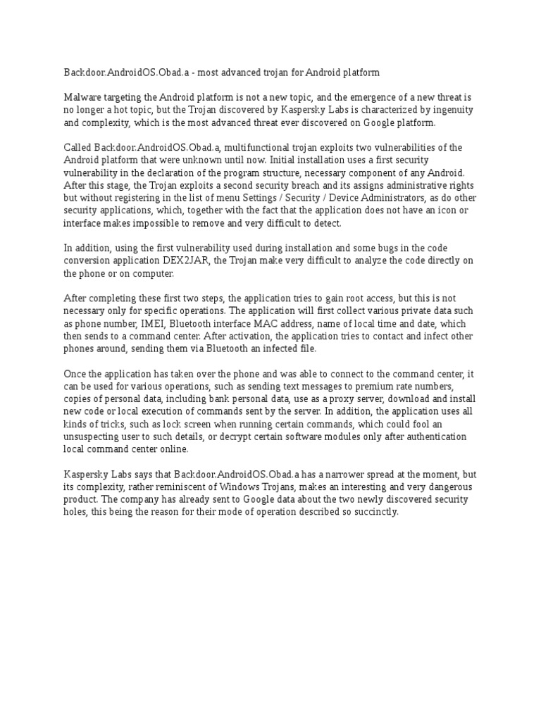 Android platform that were unknown until now. (nitial installation uses a first securit!