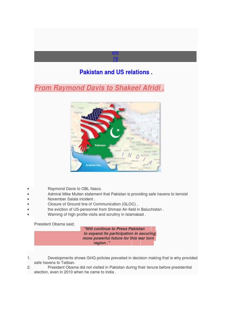 Pakistan and US relations .