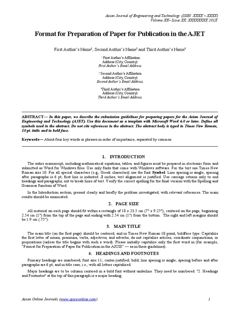 ABSTRACT In this paper, we describe the submission guidelines for preparing papers for the Asian Journal of