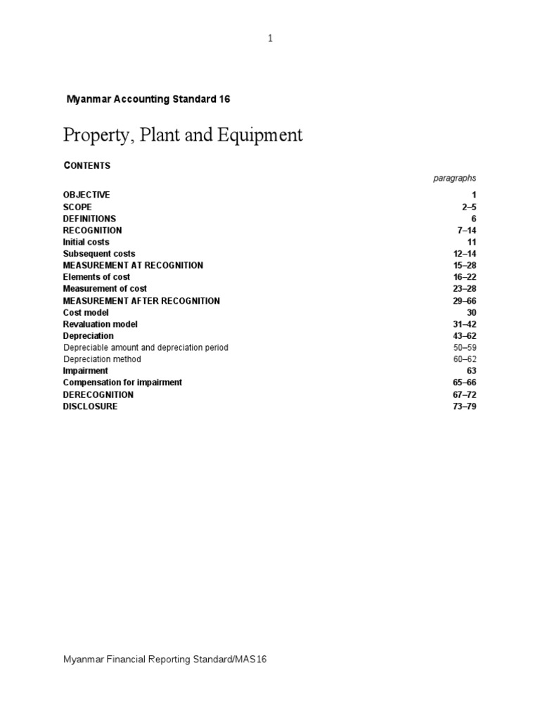 Myanmar Accounting Standard 16 Property, Plant and