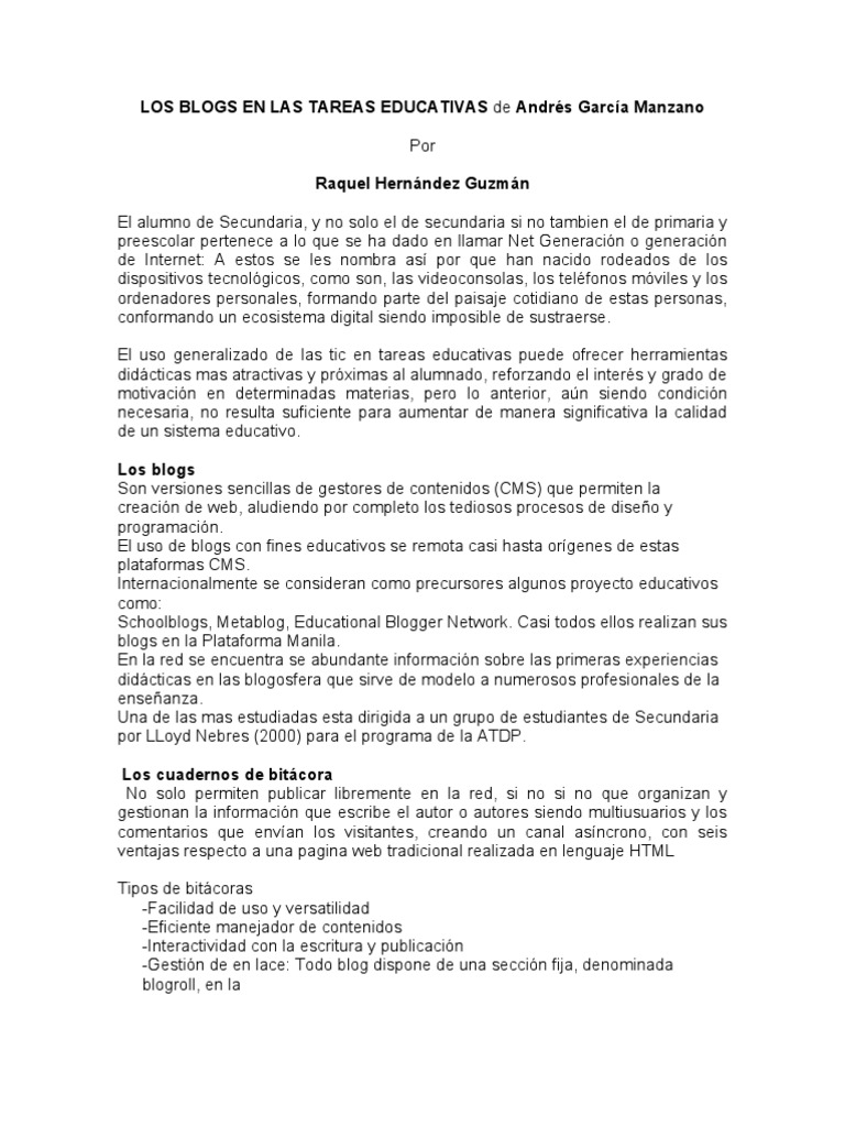 interdiciplinares en los que participan varios alumnos, hasta blogs temáticos