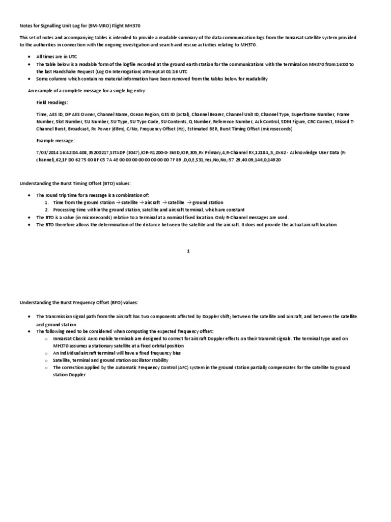 MH370 Data Communication Logs