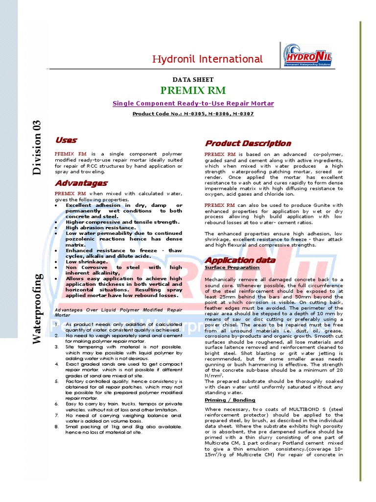Description PREMIXRM100 PREMIXRM200 PREMIXRM300
