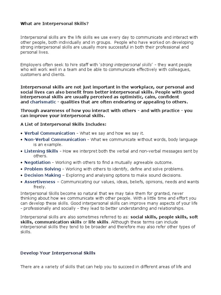 can develop these skills. Good interpersonal skills can improve many aspects of your life