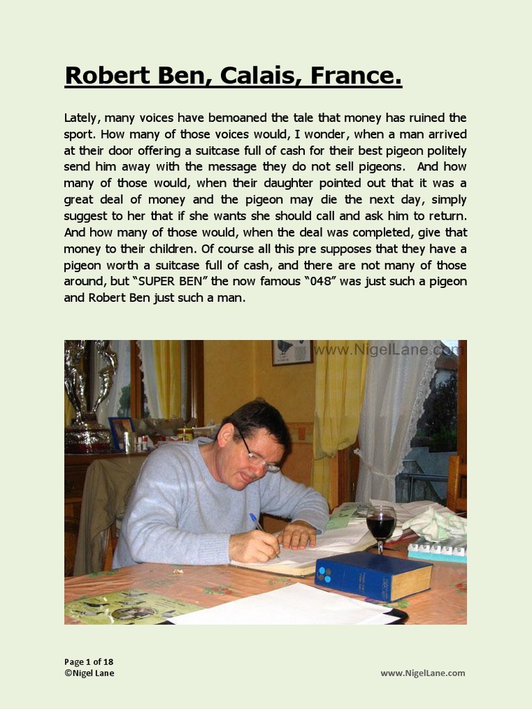 if Robert Ben is or was a one pigeon man how is it that in the year after