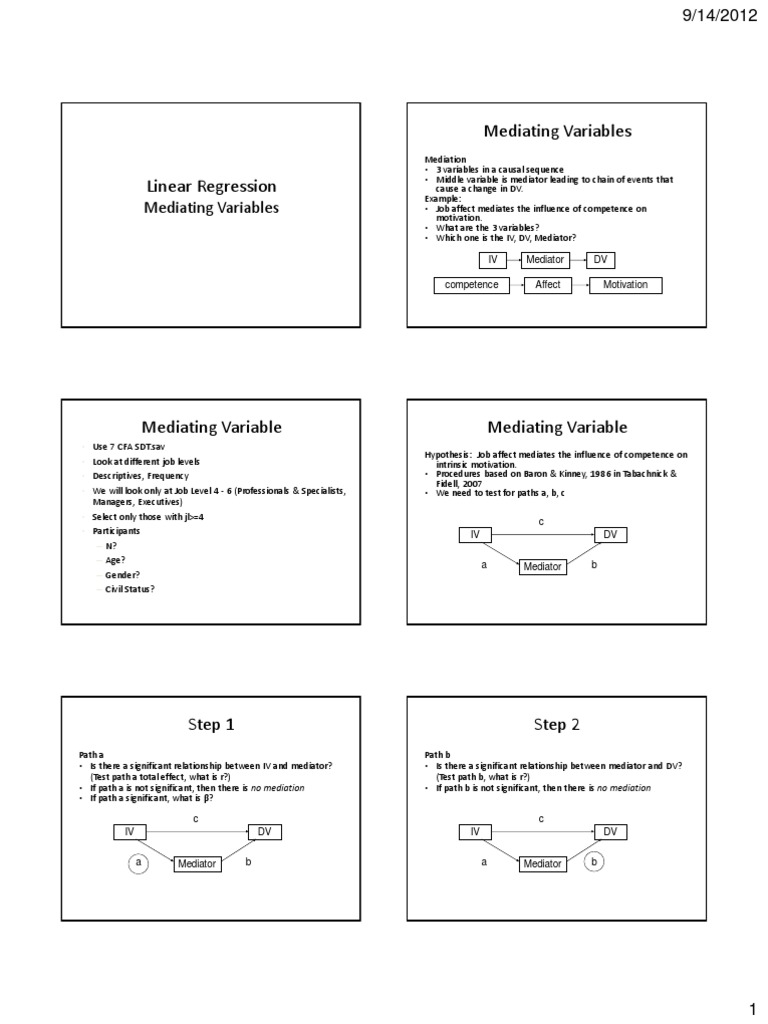 Procedures based on Baron & Kinney, 1986 in Tabachnick &