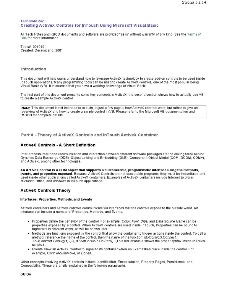 Note: This document is not intended to explain, in just a few pages, how ActiveX controls work, but rather to give an