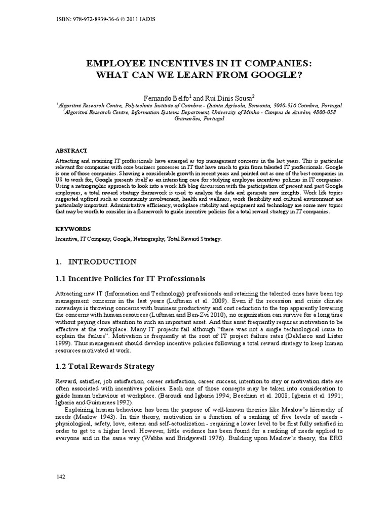 US to work for, Google presents itself as an interesting case for studying employee incentives policies in IT companies.