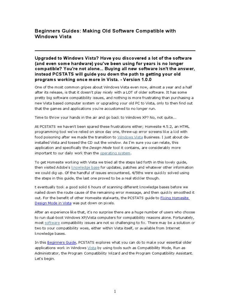 The first and best compatibility tool in your Windows Vista compatibility troubleshooting