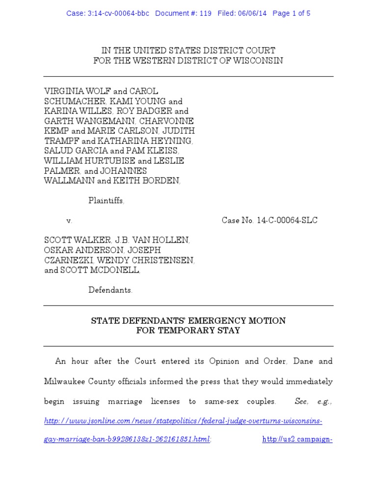 , 14-4060 (10th Cir. June 5, 2014). The Milwaukee and Dane County clerks’ issuance of marriage licenses to same-sex couples this weekend creates the non-uniform result that some same-sex couples can marry and others cannot. Further, like the Utah couples who married before Justice Sotomayor stayed the district court’s ruling in