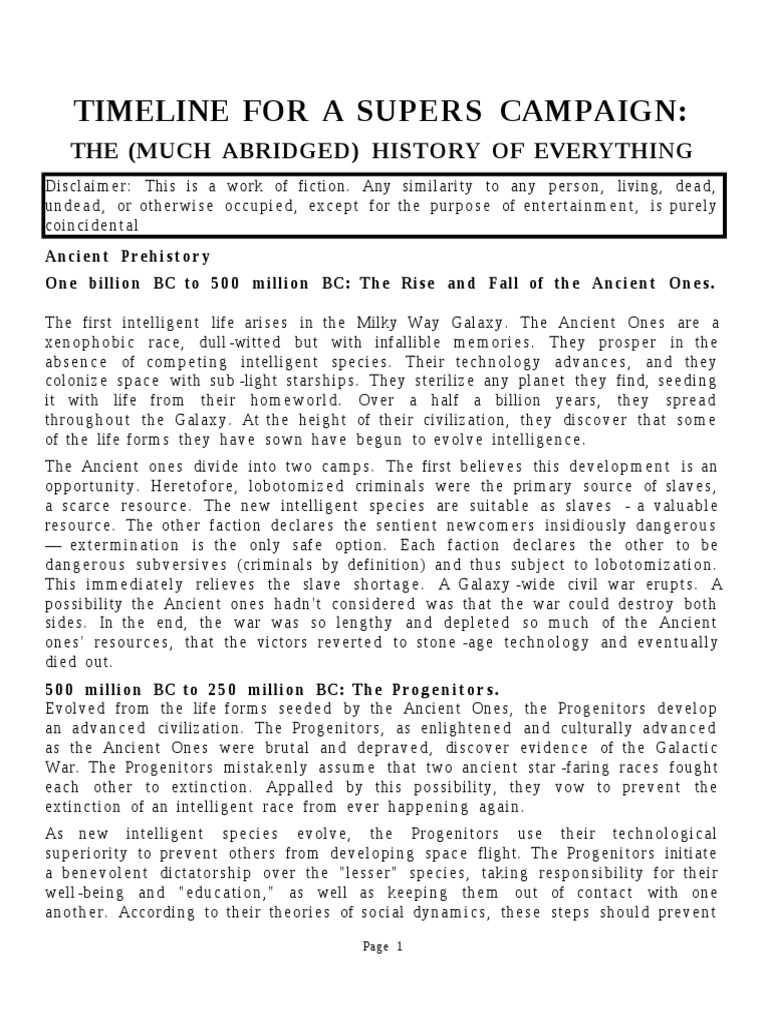 The first intelligent life arises in the Milky Way alaxy. The Ancient !nes are a