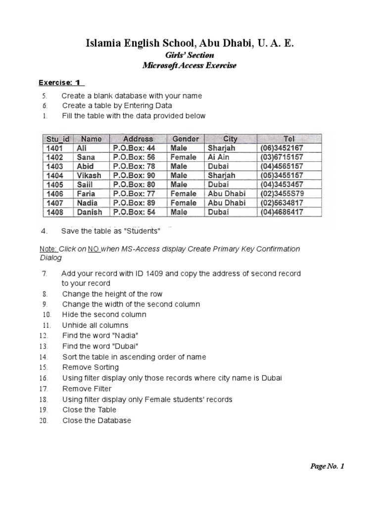 16. )sing 'ilter display only those re"ords where "ity name is Dubai