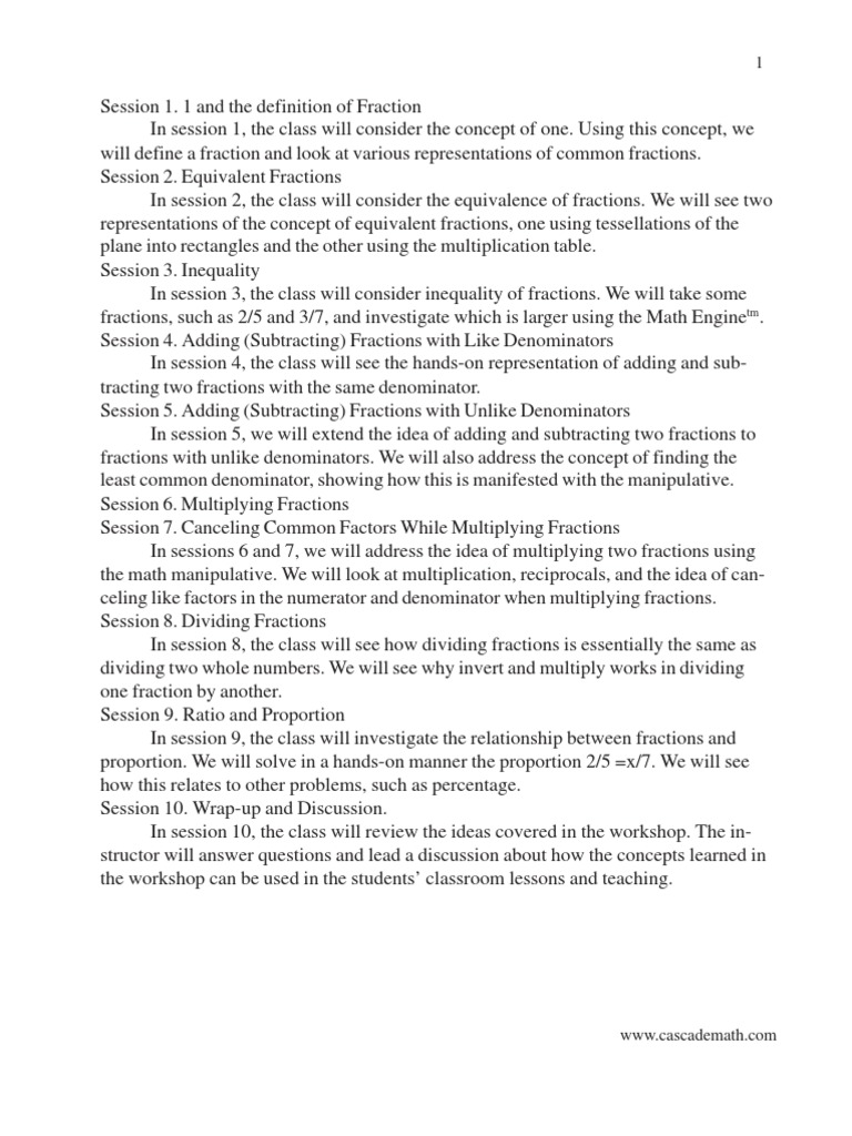 This workshop is a 10-hour study of fractions. I want you, the student, to try to