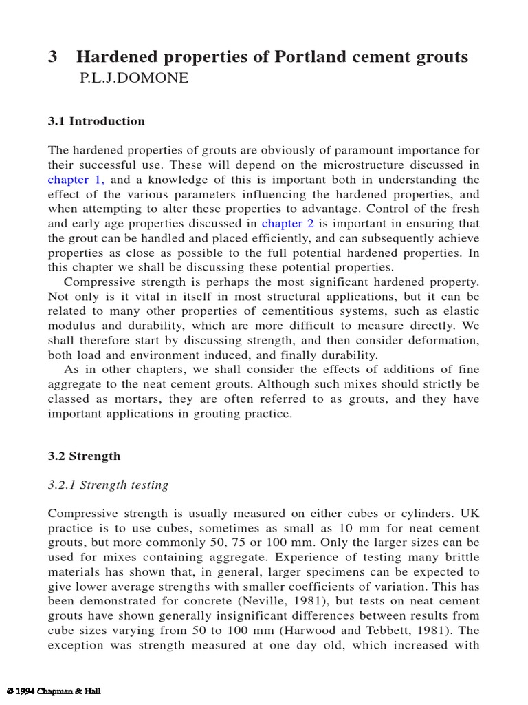 Hardened properties of Portland cement grouts