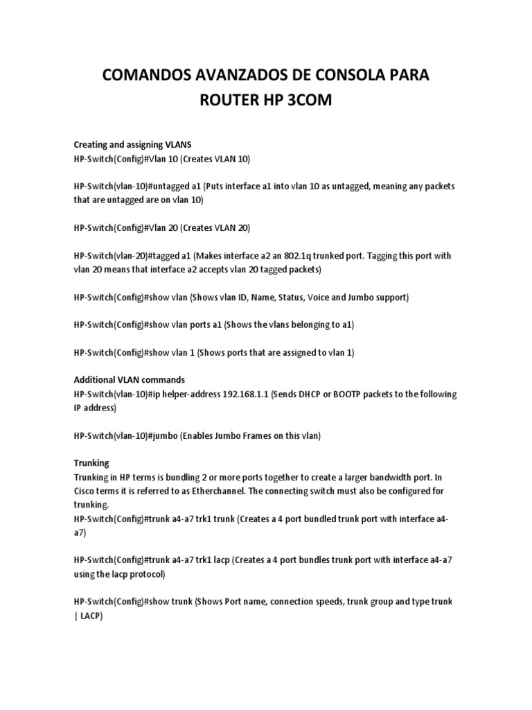 HP-Switch(Config)#trunk a4-a7 trk1 trunk (Creates a 4 port bundled trunk port with interface a4-
