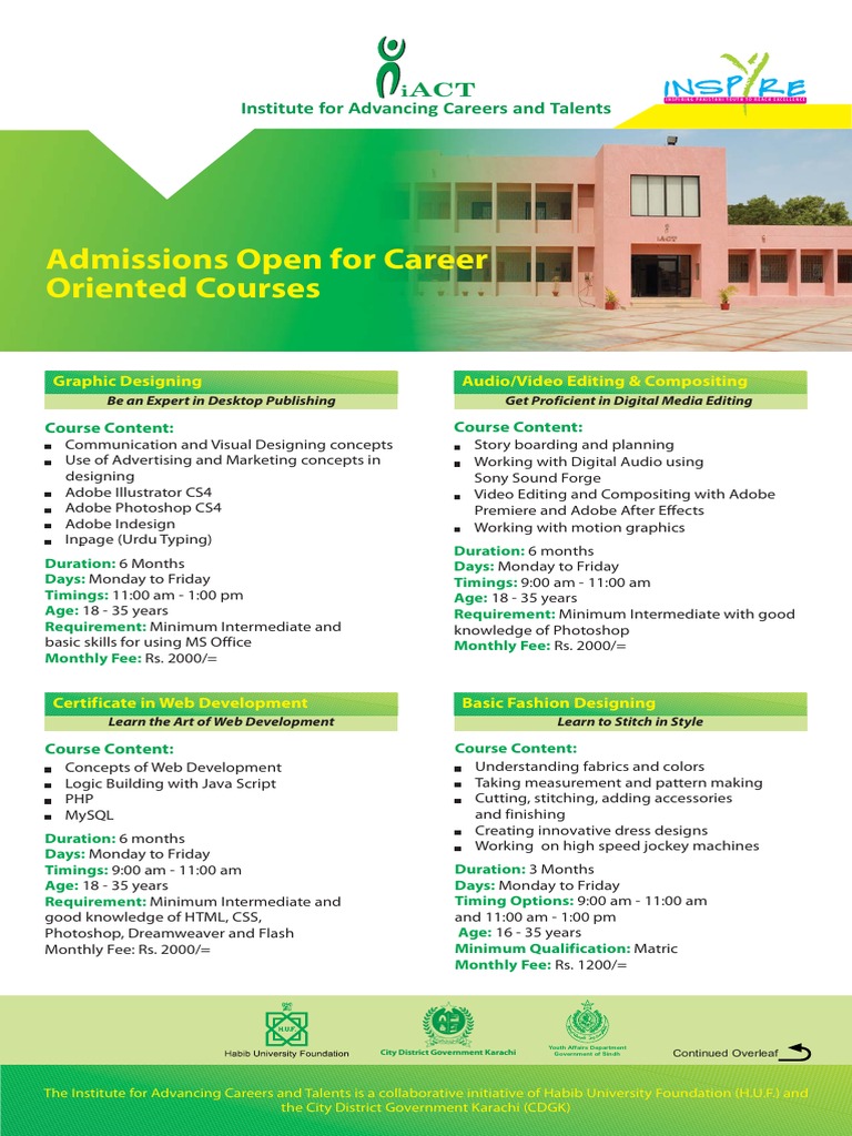 The Institute for Advancing Careers and Talents is a collaborative initiative of Habib University Foundation (H.U.F.) and