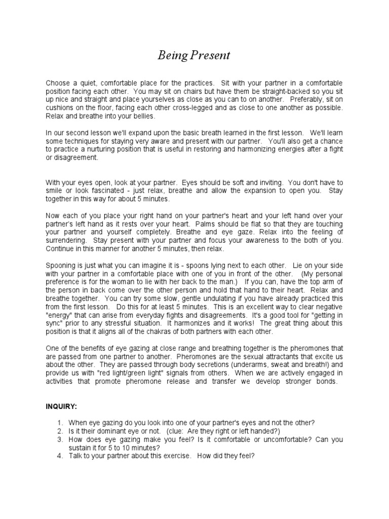 some techniques for staying very aware and present with our partner. You#ll also get a chance