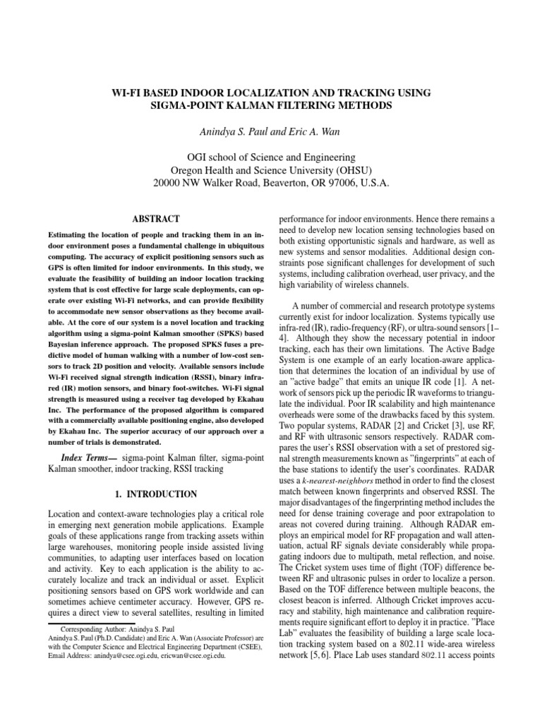 using a optical ranger and a known priori map of the environment. Kalman lter and their variants have also been applied to indoor people tracking. For examples, Fod et al. [12]